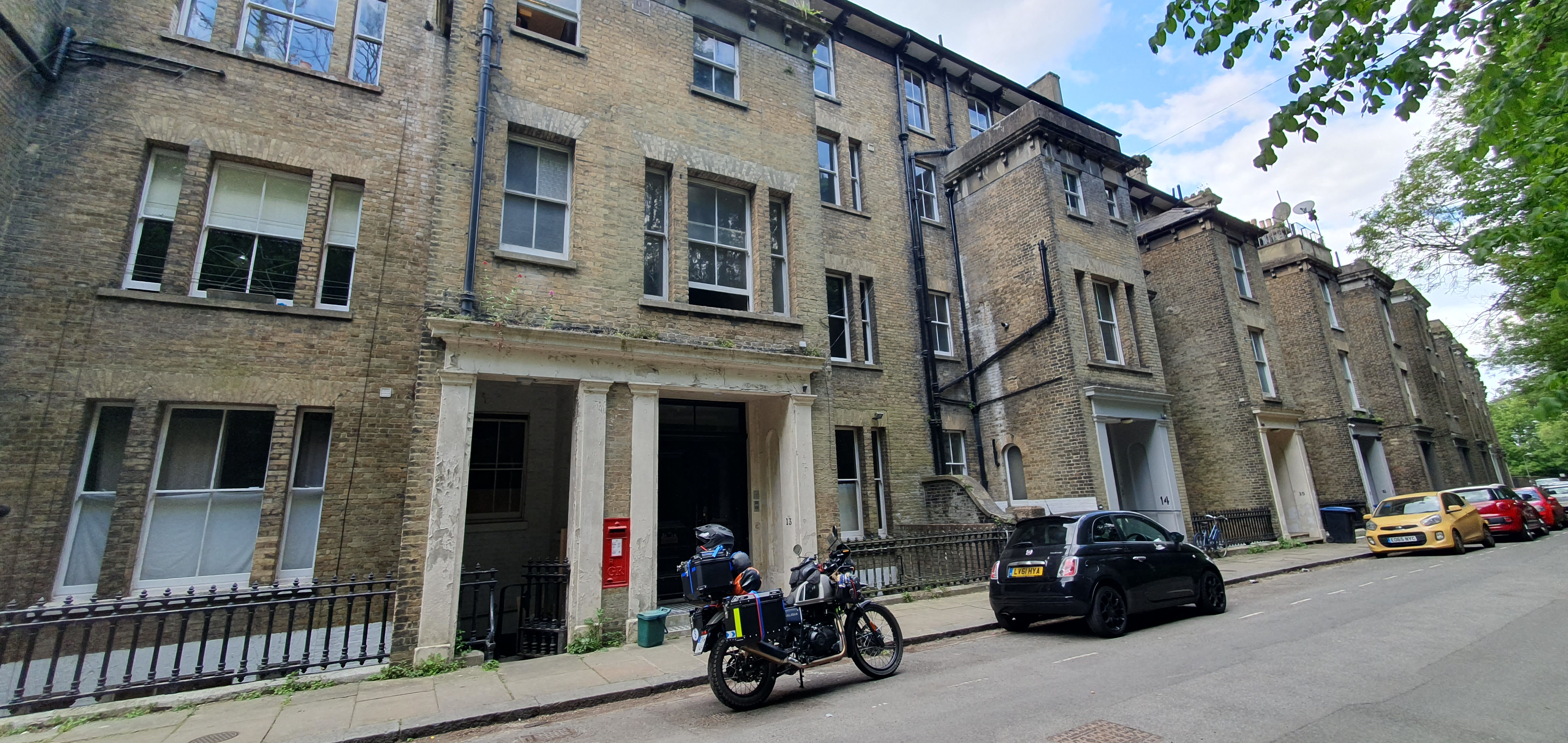 Lõpuks jõudsin soovitud sihtmärgini. Paraku oli paarikymne aastaga muutunud ka Londonis mõndagi. Sellest tänavast oli saanud geto. Kui asutasin end rattalt maha tulema, peatus yks viisaka välimusega vanem härra, proua käevangus. Tutvustas end ka mootorratturina ja ytles, et ma ei eemalduks oma rattast rohkem, kui kymme sammu. Piirkond pidavat olema nii krimi, et rattale laotud asjad kaovad hetkega. Tänasin teda heatahtliku nõu ja selle väärt info eest. Kuidagi aga tahtsin ma selle ajaloolise streeti koos enesega jäädvustada. Silmanurgast nägin, et kogu etyydi ajal nihkus lähemale yks tytarlaps...või no naine tegelikult. Peatus siis ratta kõrval ja tegi nagu uuriks oma telefoni. Aina uuris. Alles siis taipasin, et noor ettevõtja soovis oma teenust pakkuda. Seekord ta siiski eksis sihtgrupiga. Niipalju ometigi, et kõnetasin teda esimesena ja kysisin kas ta võiks teha yhe foto. Aimasin ilmes pettumust, kuid pildi ta siiski tegi ja tasu selle eest ei nõudnud. Lahkusin sellelt tänavalt, kus kollaste madratsite ja mööbltykkidega täidetud tänavaäärsed meenutasid aegu, mil sellises kohas elukoht oli veel edulugu.
